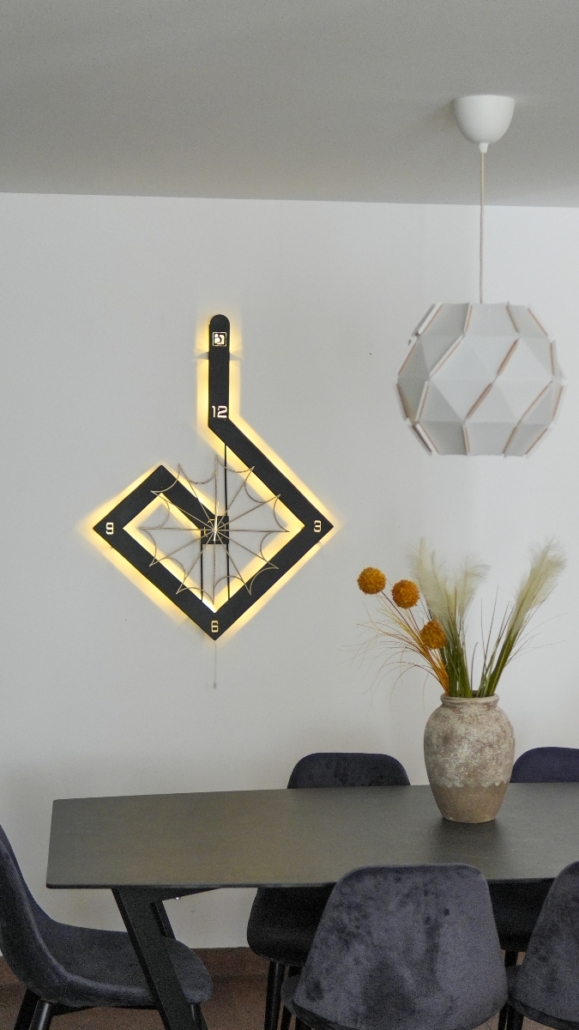 Gecenin karanlığında LED aydınlatma devreye girer; zaman duvarda adeta parlamaya başlar.
