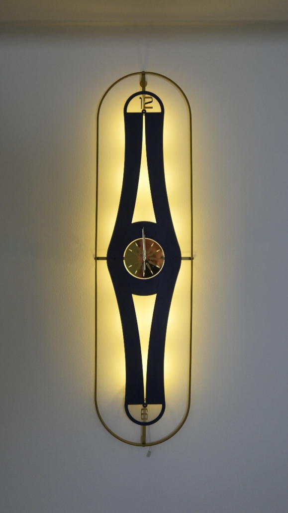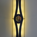 Zamanın altınla ışık arasında salındığı bir duvar heykeli.