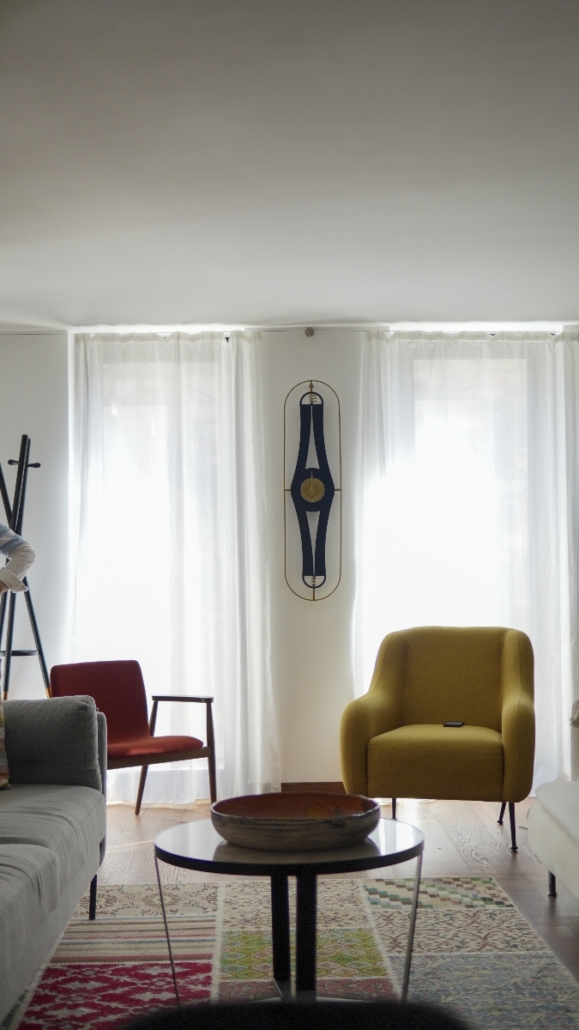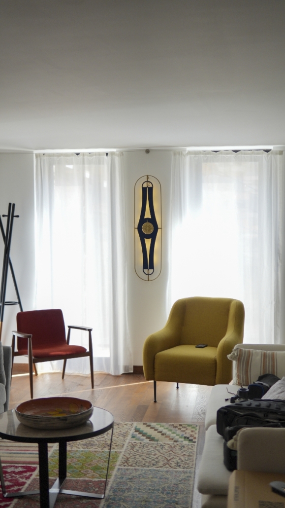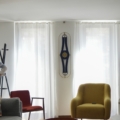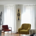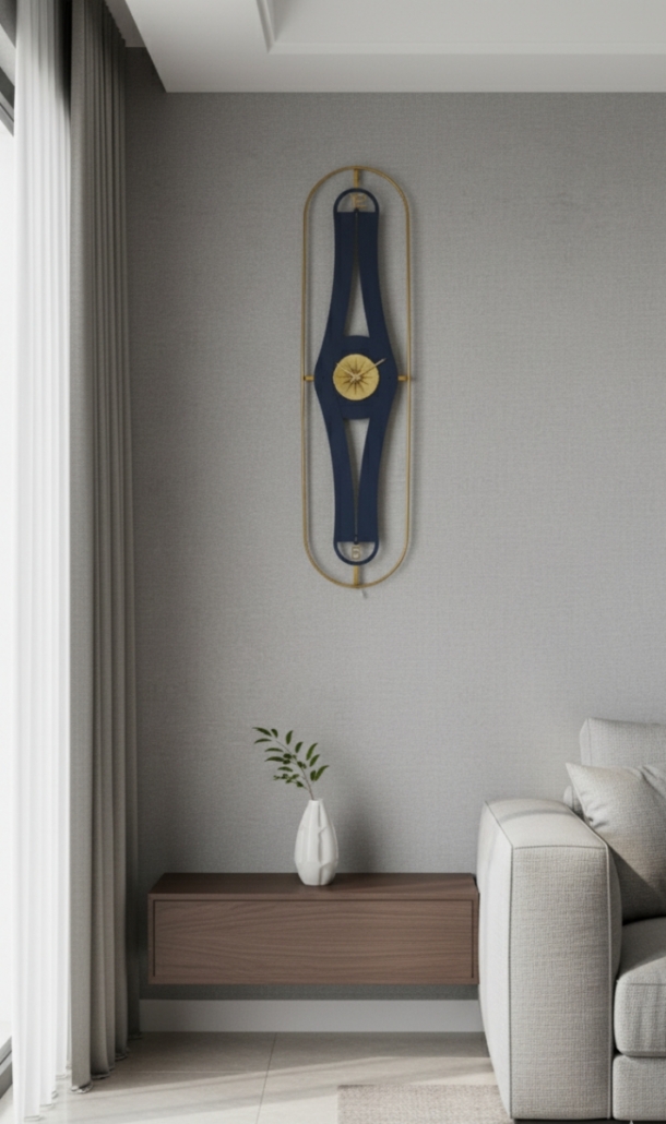 Dikey ve ince formu, duvar yüzeyinde güçlü bir duruş yaratır ve mekânın oranlarını yeniden tanımlar.